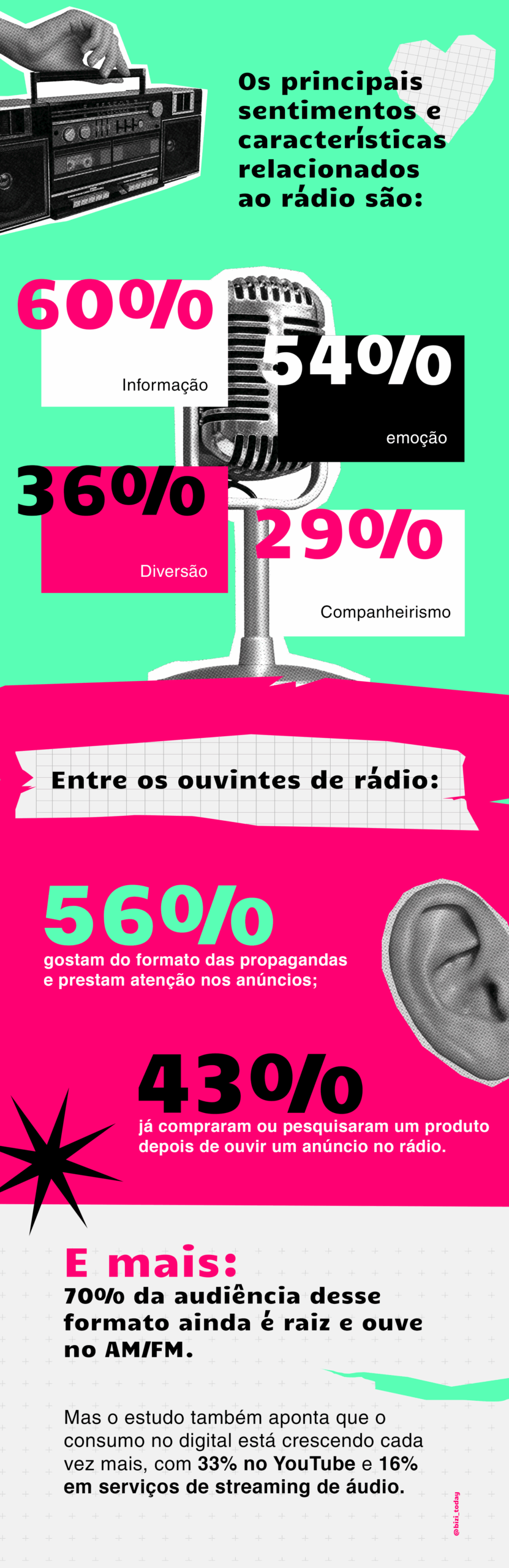 E com a ascensão dos podcasts, streamings e rádios digitais, esse formato definitivamente não morreu; ele se reinventou. Até hoje, o áudio apresenta um bom crescimento, tanto entre o público, como nas estratégias de mídia.