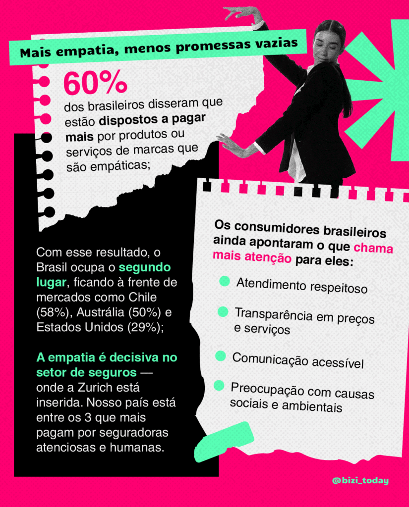Aliás, o estudo global Addressing the Empathy Gap, feito pela Zurich Insurance Group em parceria o YouGov, mostrou que o Brasil é um dos países que mais leva essa empatia em consideração: