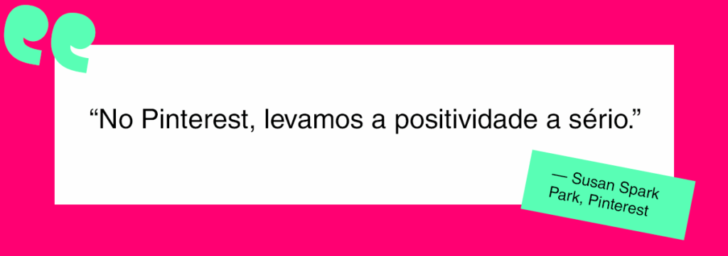 Mas também tem outro ponto muito interessante nessas buscas visuais e sem marca do Pinterest: a positividade. Segundo Spark, conforme o online otimizou o transacional, a alegria de comprar diminuiu; mas o Pinterest quer trazer essa alegria da experiência de volta.