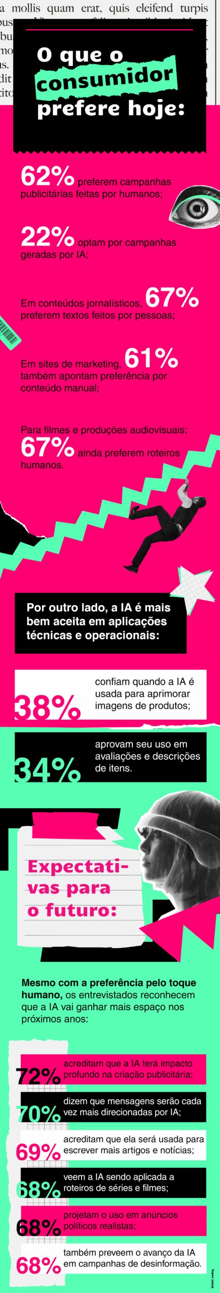 A discussão sobre o uso da IA em conteúdos publicitários tem ganhado novas camadas. De um lado, a tecnologia avança em ritmo acelerado e se consolida como ferramenta estratégica. De outro, o consumidor ainda valoriza, e muito, o fator humano na criação de campanhas e materiais.